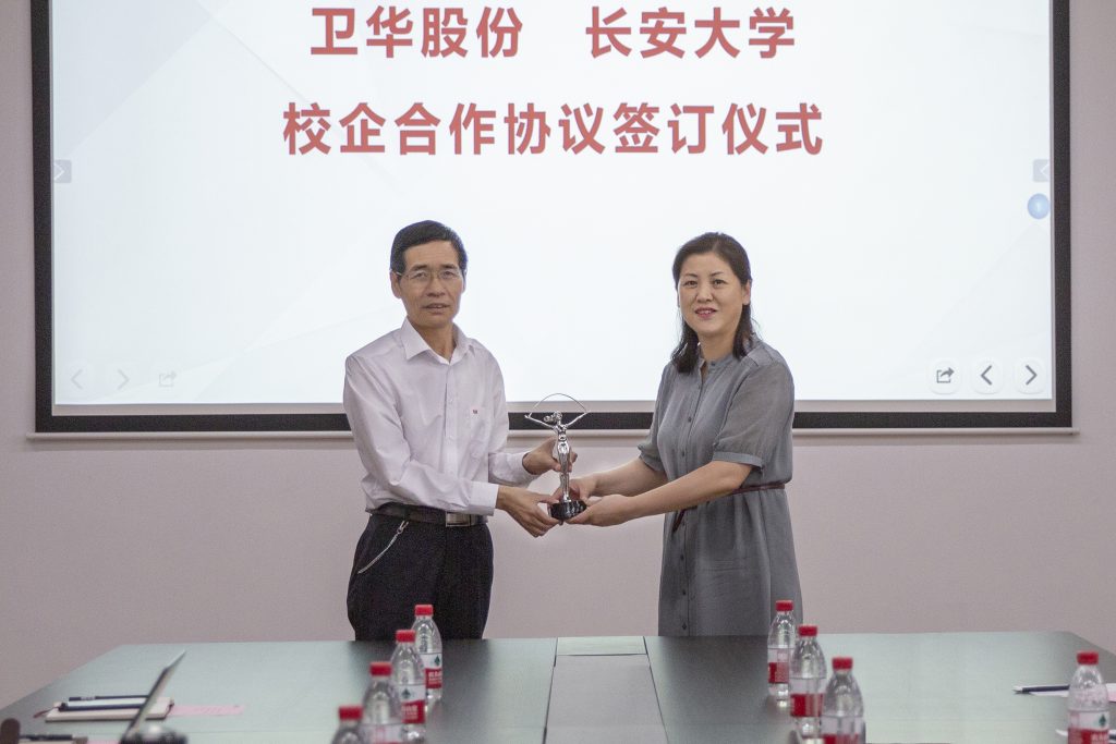 长安大学工程机械学院党委书记于丽娟将长安大学标志性建筑 “彩虹女神”的缩小版雕塑赠予世界杯官网中文版股份,这份珍贵的礼物也是世界杯官网中文版股份与长安大学友谊的见证。