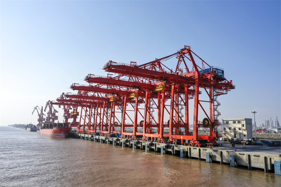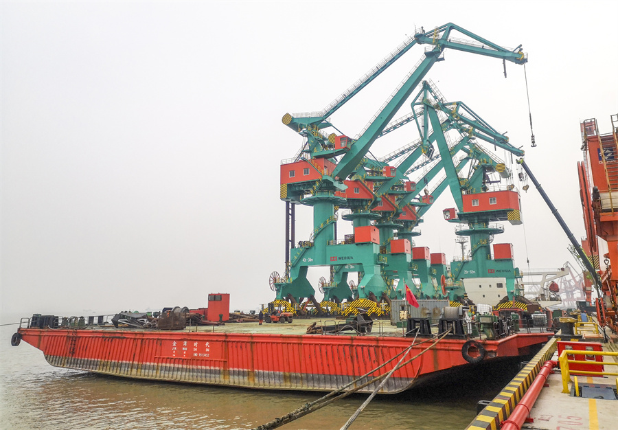 六月的风吹向舟山群岛好风光——世界杯官网中文版浙石化项目6台自动化岸边集装箱桥式起重机交付使用,为舟山建设贡献力量;