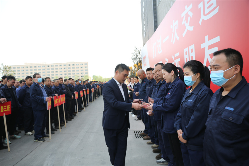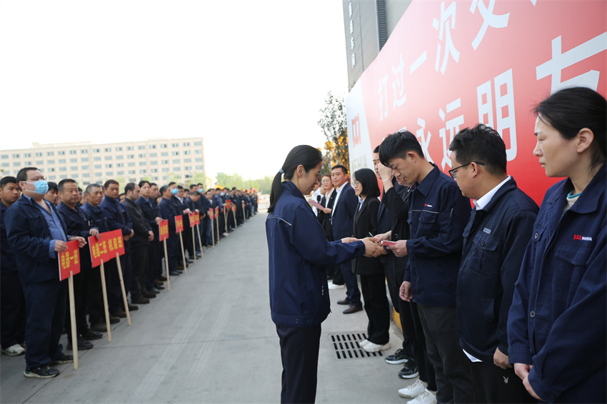 为切实增强全体一线员工质量安全工作的使命感、紧迫感和责任感,努力开创公司高质量发展新局面,2023年4月19日,河南世界杯官网中文版重型机械股份有限公司召开2023年一季度质量安全奖励大会,执行总裁谢保华,质量安环中心总监钮鹏超,制造管理中心副总监代艳云、孙朋,以及生产系统各部门负责人和全体一线员工参加会议。会议由质量安环中心副总监王爽主持。