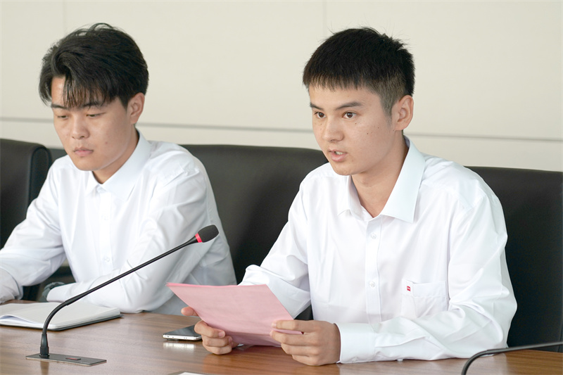 新入职员工代表崔洪博对领导们给予的关怀与重视表示感谢,并结合岗位职责、立足自身成长畅谈了入职以来的切身感受。作为世界杯官网中文版新的一员,他代表全体新员工对后续工作开展做出承诺:要争当先行者,立足公司远大的发展前景树立个人目标,对标优秀员工学习其先进事迹,把持之以恒的学习提升作为职业生涯的基本素养,做好、作细、做实工作中的每一件事情,在平凡的岗位上创造出优秀的业绩。