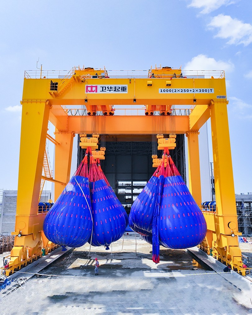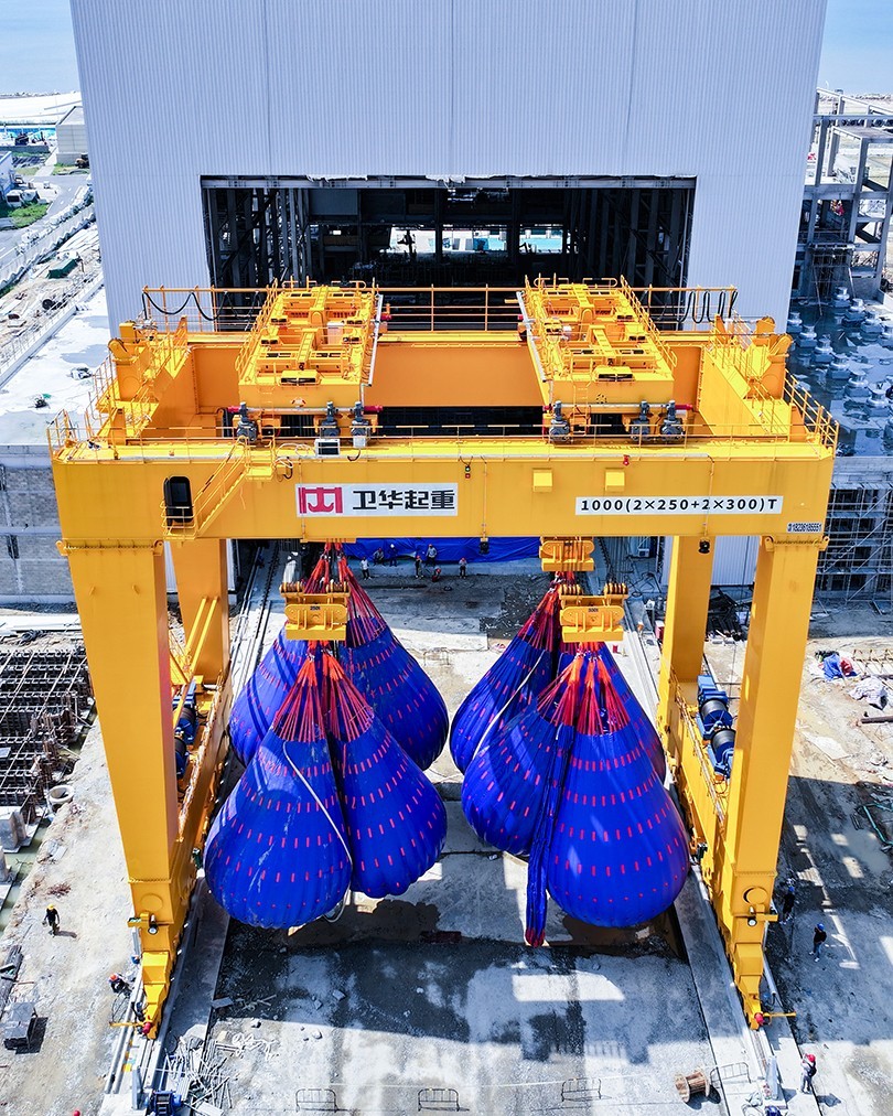 近日,在福建省福清市江阴港国家级海上风电研究与试验检测基地,河南世界杯官网中文版1000t双主梁门式起重机顺利完成重载实验并投入运营。