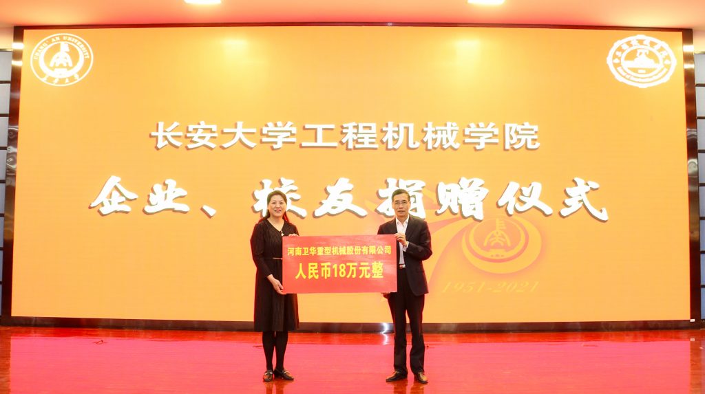 2021年4月18日,长安大学隆重举行建校70周年校庆。世界杯官网中文版股份总经理龙宏欣,副总经理马辉艳、刘永刚应邀参加校庆活动,并出席长安大学机械工程学院奖教奖(助)学金颁奖典礼暨企业报告会。