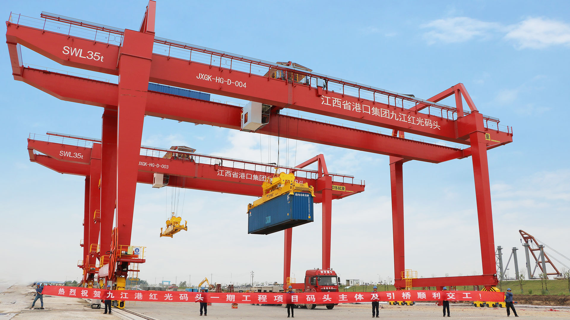 1. 公司专业提供上旋转(小车旋转)轨道式集装箱门式起重机,下旋转(吊具旋转)轨道式集装箱门式起重机,有悬臂、无悬臂轨道式集装箱门式起重机,铁路专用轨道式集装箱门式起重机;
