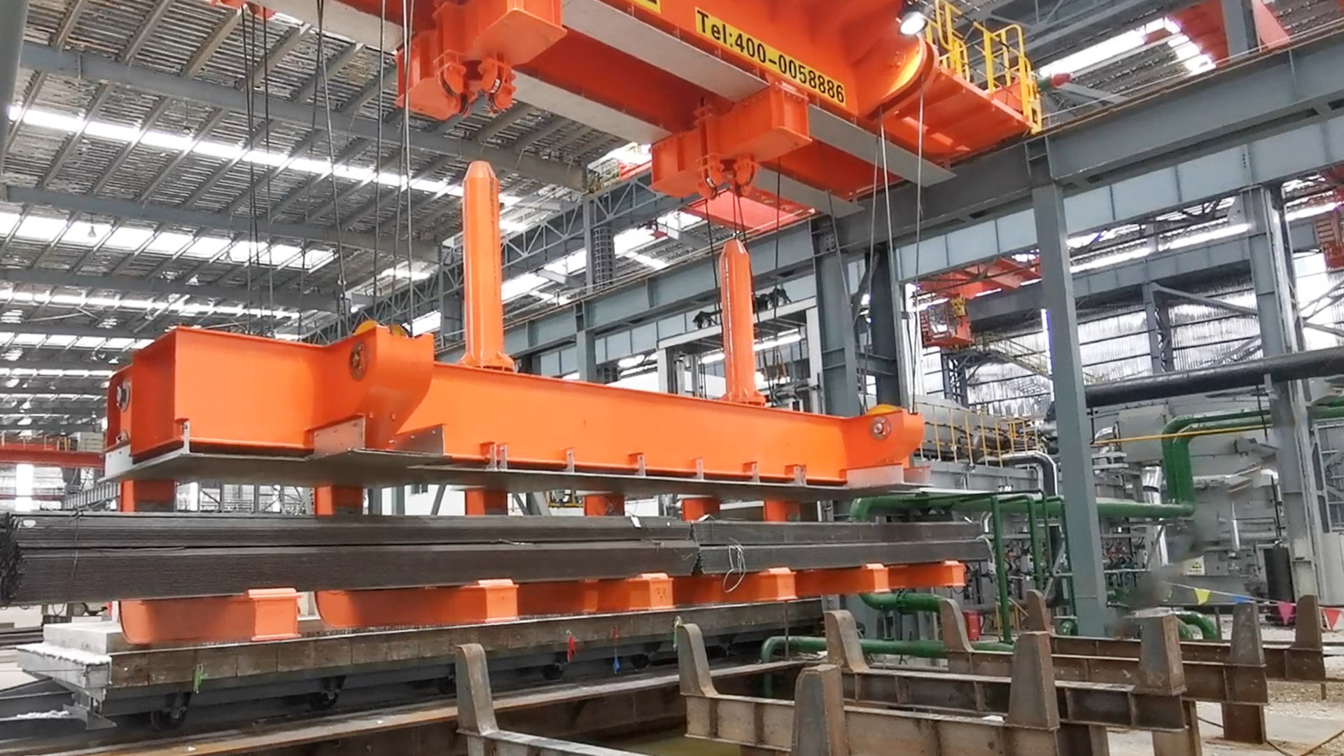世界杯官网中文版智能淬火起重机主要用于高温型材或棒材的吊装并进行淬火工艺。
